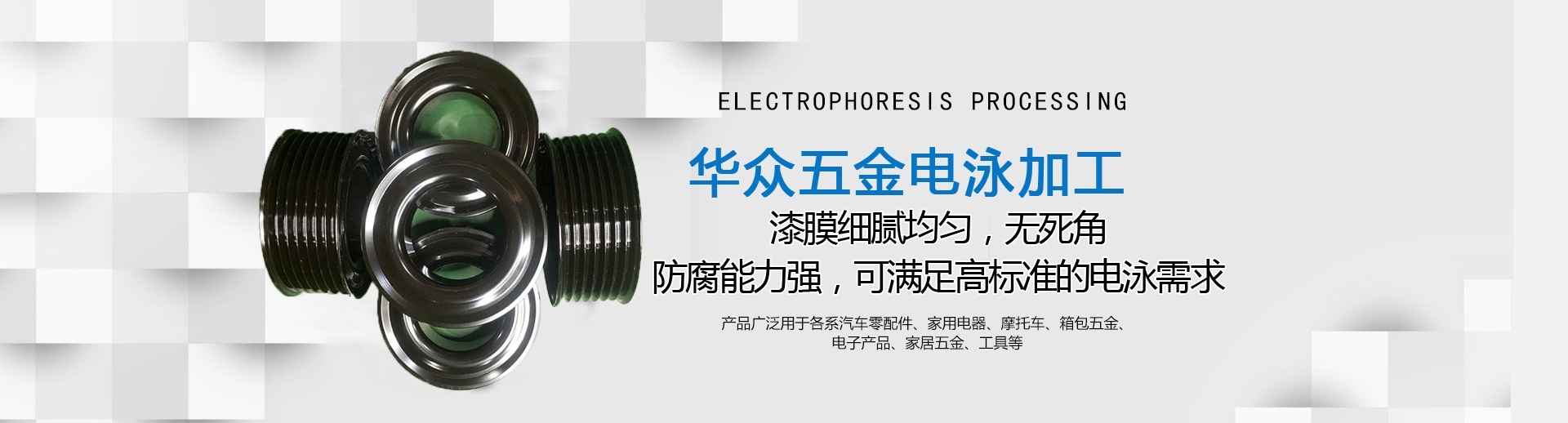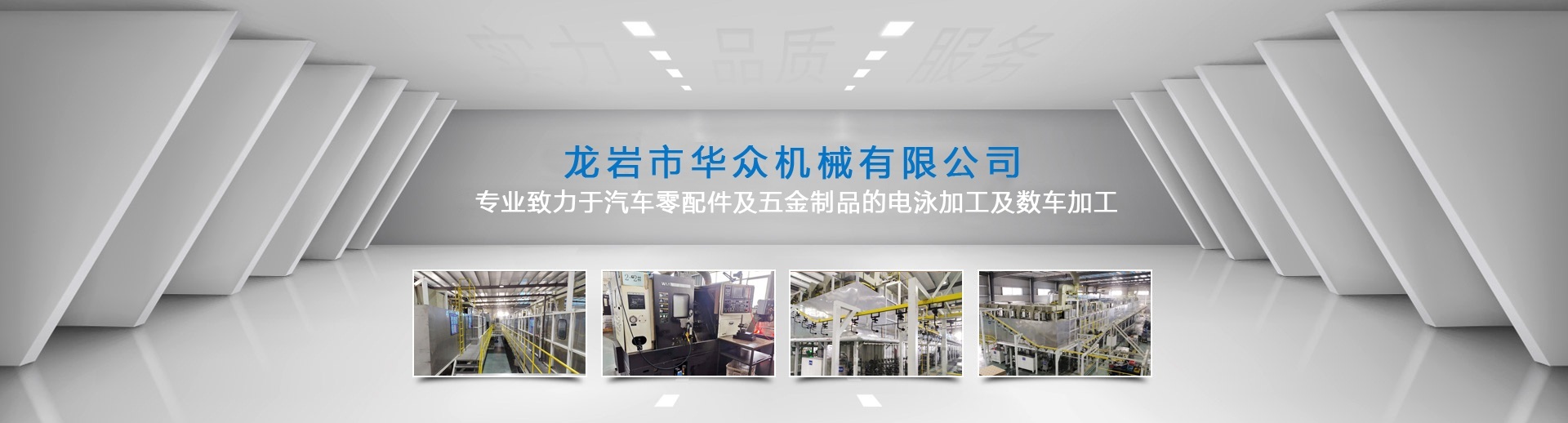 龍巖市華眾機械有限公司網(wǎng)站上線啦!!! 龍巖市華眾機械有限公司前身為龍巖市杰瑞特工貿(mào)有限公司,成立于2010年12月。新廠座落于福建省龍巖市新羅區(qū)東寶工業(yè)集中區(qū),注冊資本500萬元,占地面積約27,000平方米,員工60多人 。公司擁有涂裝行業(yè)10年以上工作經(jīng)驗的技術團隊。2018年8月經(jīng)NSF-ISR評估獲得IATF16949質量管理體系認證通過并取得證書。 現(xiàn)專業(yè)致力于汽車零配件及五金制品的電泳加工及數(shù)車加工。